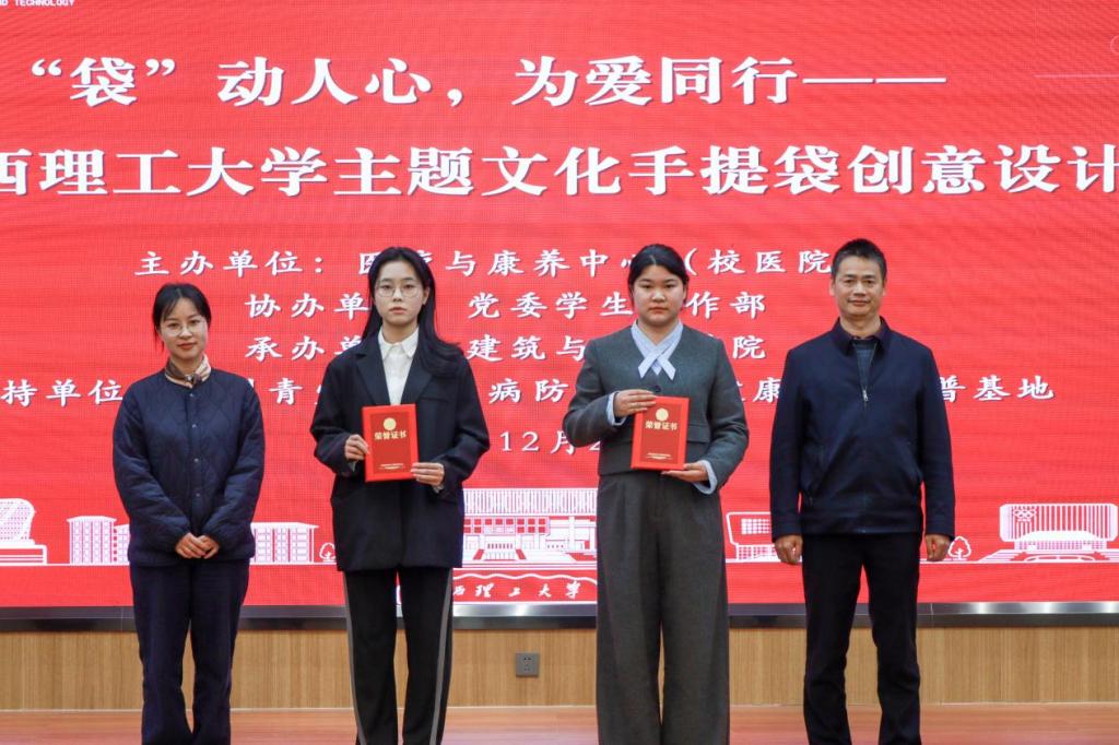 After scoring and joint discussion by the judging committee, the list of winners for the first, second and third prizes was finally determined. During the award ceremony, Liu Xianpeng (Deputy Secretary of the Party Committee of the College of Architecture and Design), Long Ping (Deputy Secretary of the University Youth League Committee) and Liu Duanxiang (Dean Assistant of the University Hospital) presented awards to the third prize winners; Yang Rongrong (Section Chief of the AIDS Prevention Section) and Liu Liming (Deputy Director of the Student Affairs Office) awarded the second prizes; Zhou Maoping (Dean of the University Hospital) presented the first prize and took group photos with the winner as a memento.