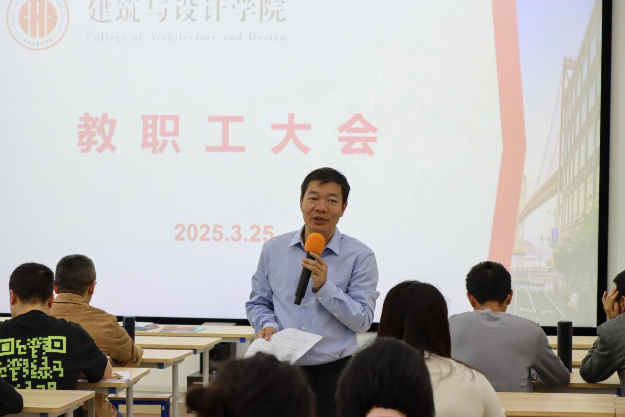 Online News Report: On March 25, our college held a faculty meeting in Room 502 of Rixin Building. All faculty members of the college attended the meeting, which was chaired by Zhou Xiaojin.